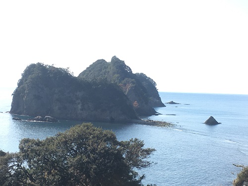 運が良ければトンボロ現象が見れる三四郎島を眺め