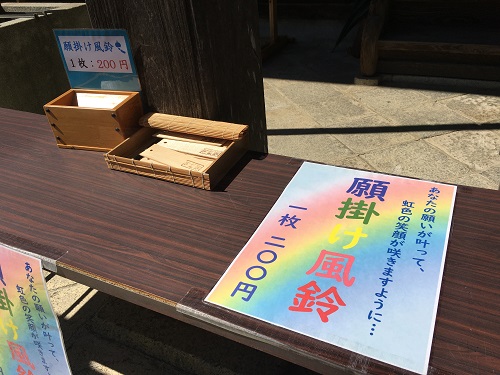 「願掛け風鈴」でこの木の札に願い事を書いて