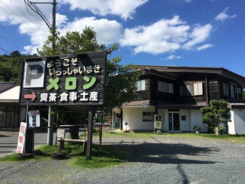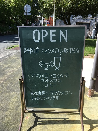 「静岡県産マスクメロン取扱店 マスクメロン生ジュース」と書いてある看板が。