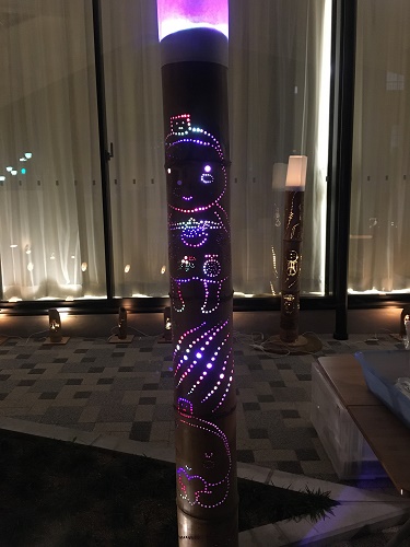 昨年ある場所で見た竹灯籠はロウソクの火だったけれど