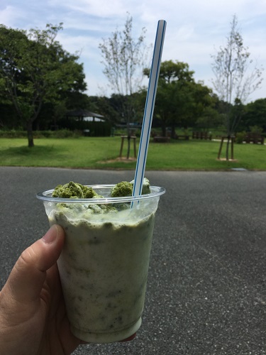 トレーラーハウスの売店でフラペリッチをオーダー。