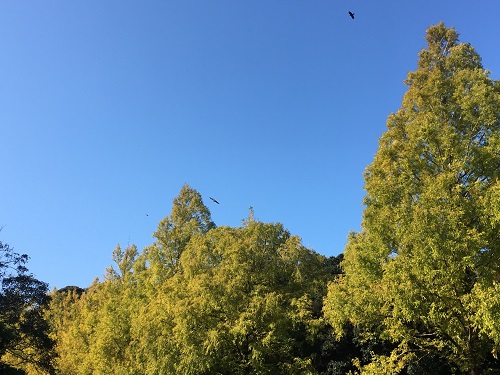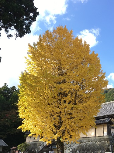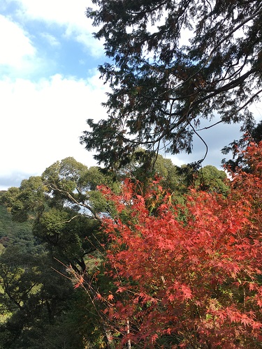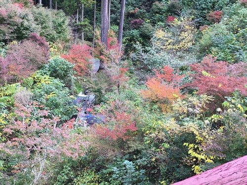 坂道を下る途中、モミジも少しずつ色づいてきていた。