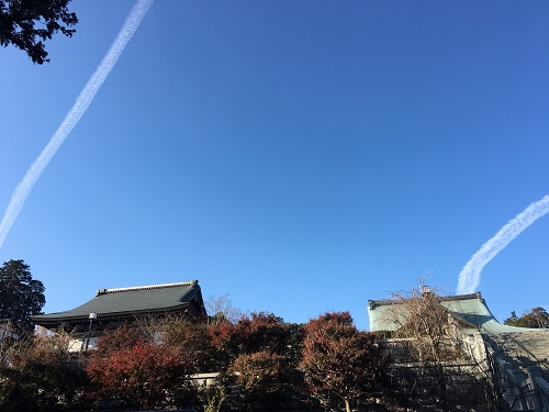 更に階段を上っていくとなんと!太い飛行機雲と更にもう1本の飛行機雲が!!