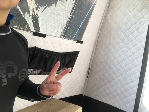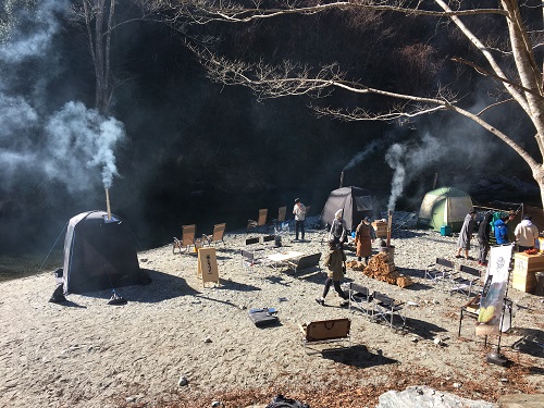 テントから突き出た煙突からはもくもくと煙が出ている。