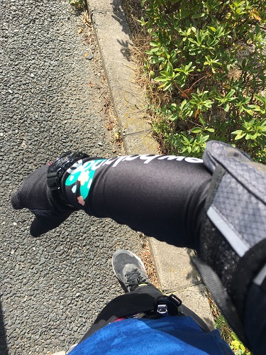 少し前にスポーツショップで購入したアームカバーを付ける。