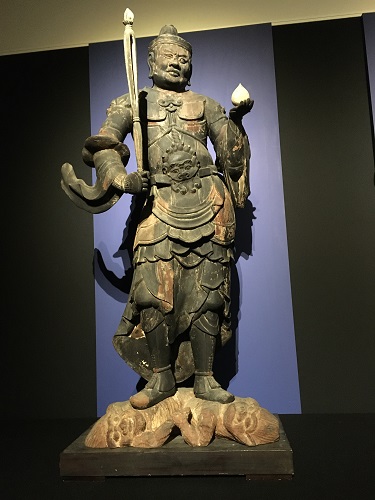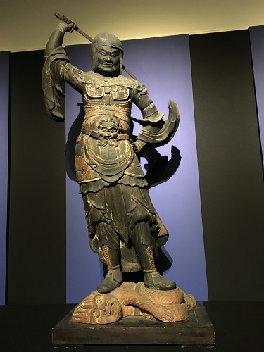 増長天立像(両手で三又の武器(三叉戟)の柄を握っている)
