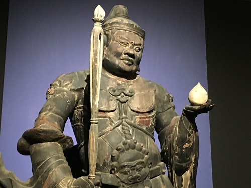 多聞天立像(左手で宝棒を握り、左手に如意宝珠を載せている)