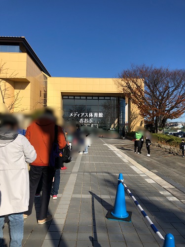 15分ぐらい前に会場に着けばいいだろう……と体育館駐車場に着いたら