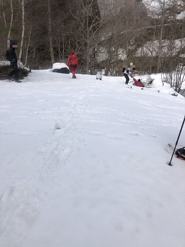 最初はスノーシューを履かないで雪道を歩いてみましょう……とみんなで歩いていたら