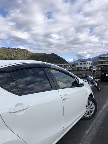 ちょうど車が出てきたのでそのスペースに縦列駐車で停めた。