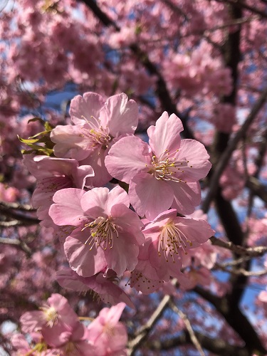 あちこちで河津桜満開のニュースが入ってくるようになった。