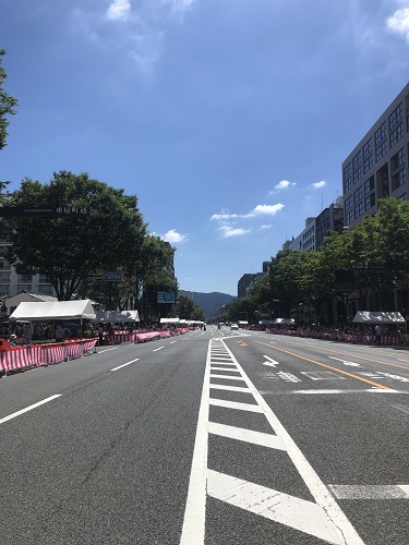 既に御池通りにはたくさんの人たちがいて、御池通の両側には有料観覧席が。