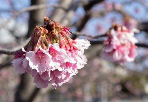 しかし、橋を越えた東側、物産店がある付近は満開とはいえなかった。