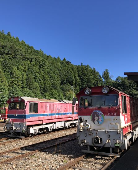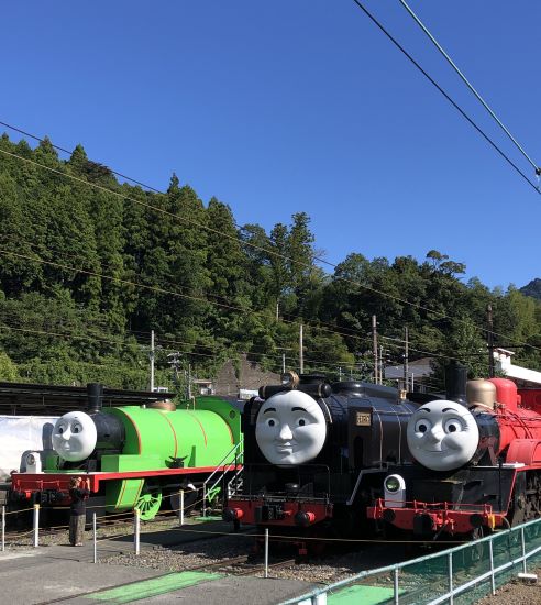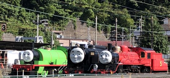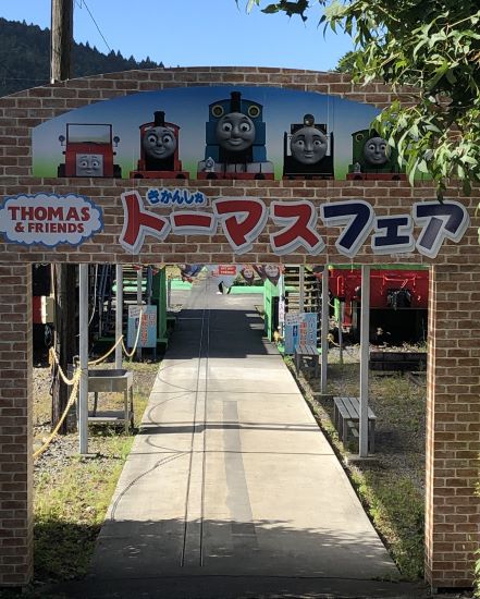 千頭駅の前を通りかかると、「きかんしゃトーマス」で出てくる機関車たちや
