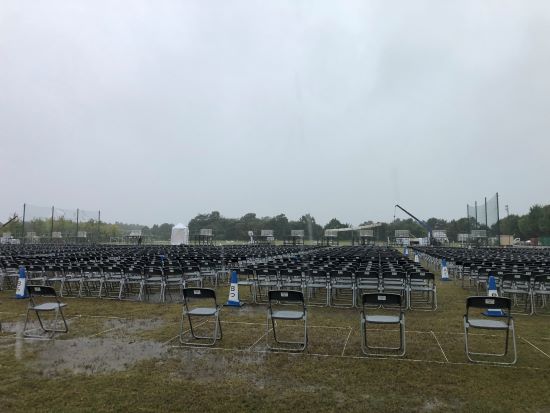 当日9時、公式サイトでは「夕方から雨が止む予報なので予定通り開催」と