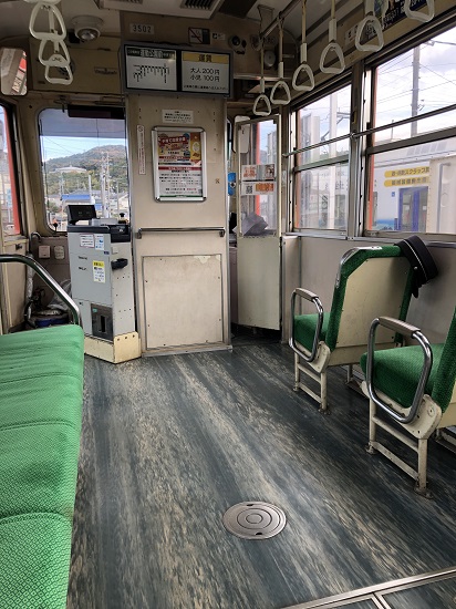 若い職員の方がハンドルをもって車内を行ったり来たりしている。