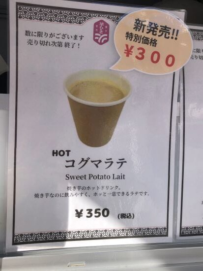 「コグマラテ」という焼芋から作られたホットドリンクが売っていた。