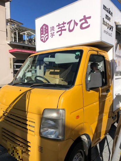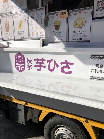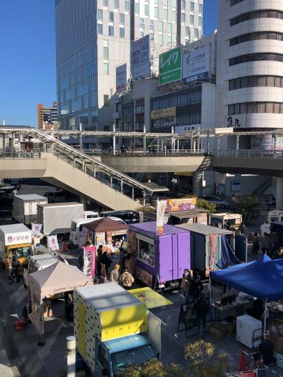 目の前の駅前広場では芋フェスに出店するキッチンカーがたくさんきていた。