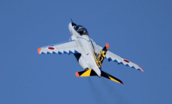 AWACSが滑走路に移動している間に上空ではT-4が!!