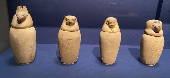 119 カノプス壷と蓋 1.ジャッカルをかたどったもの 2.ハヤブサをかたどったもの