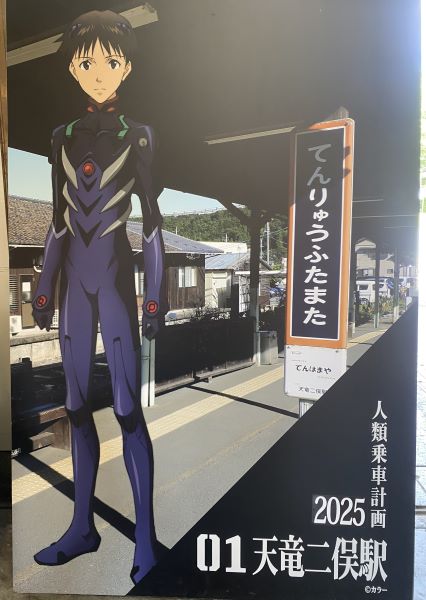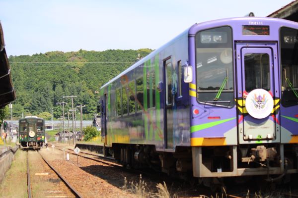 「エヴァンゲリオン ラッピング列車」が到着する前に既に駅にいた