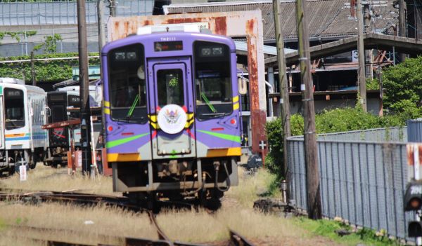 「花のリレー・プロジェクト ラッピング列車(上り)」も出発した。