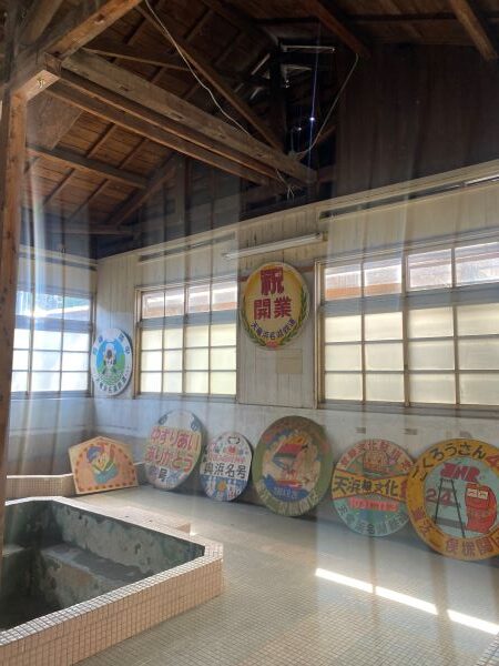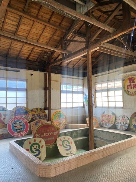 浴場の中には今までのヘッドマークが展示されている。
