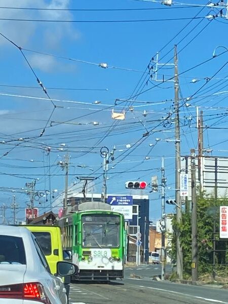 市内線の軌道を横切って曲がらなければ、大丈夫なはずである!