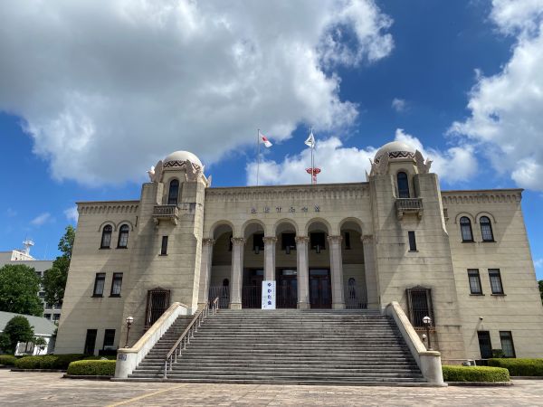 豊橋市公会堂の1階入り口前にスタンプ台があったので、3個目をゲット!