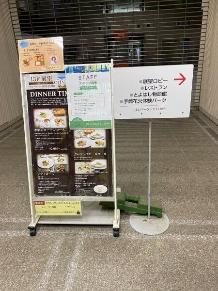 そういえば、このエレベーターに乗って13階の「手筒花火体験パーク」に行ったなぁ~。
