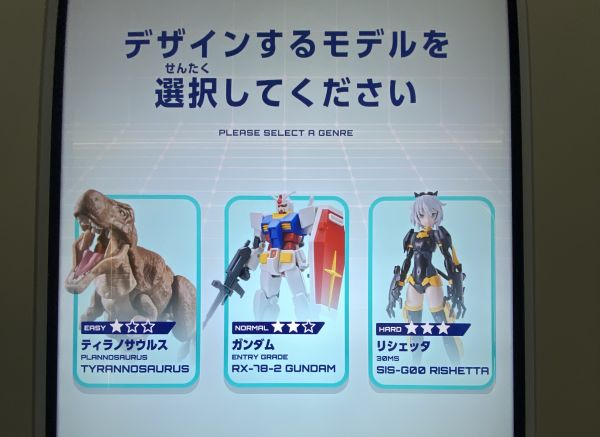 ガンダム、プラノサウルス、リシェッタから選択、自分はガンダムを選ぶ。