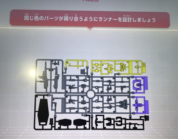 4色を同時射出するために、効率なパーツの組み合わせを考えないといけない。