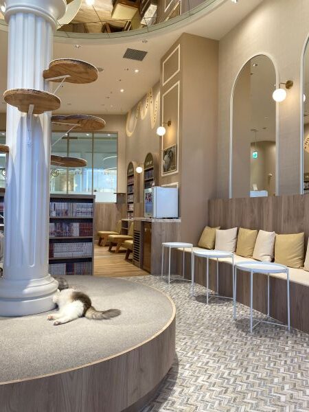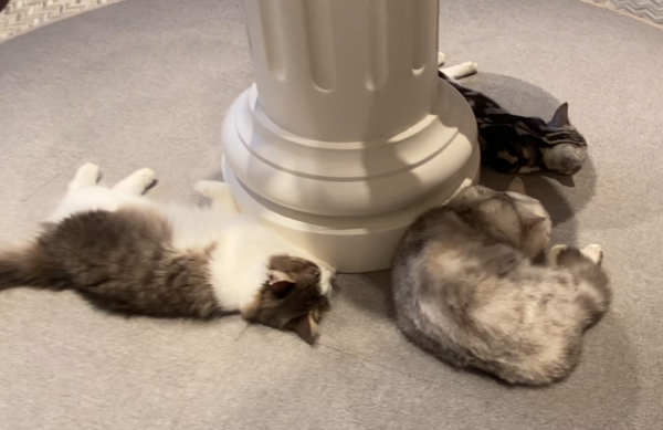 猫たちはあちこちの場所で自由気ままに過ごしている。