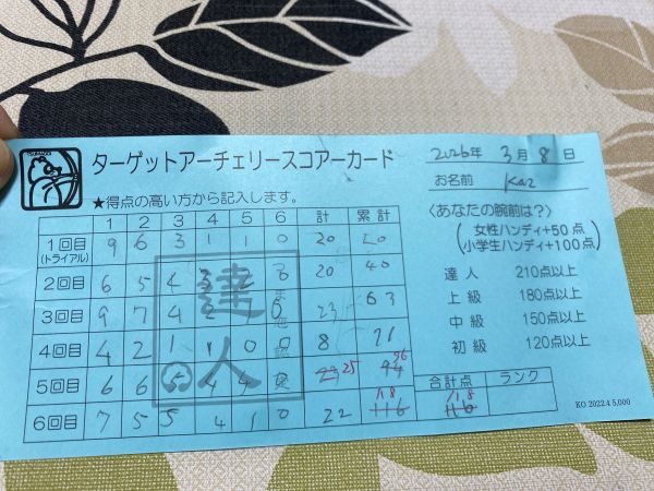 6射ずつ射って得点の高い順に書き込んでいく。