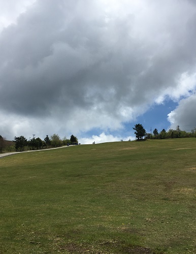 芝生は……シカの落とし物がアチコチに点在している。