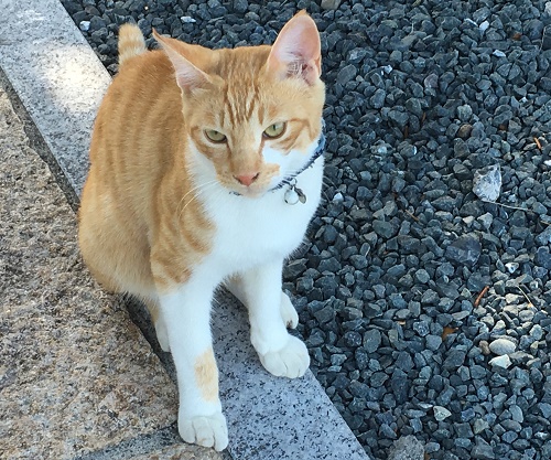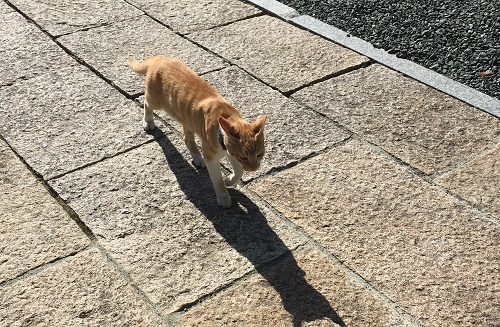 もう一匹の茶色ニャンコは少し離れた場所に座っている。