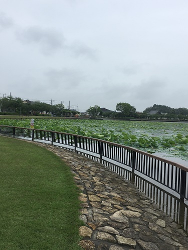 車から傘を持ってきて、池の周りを散歩してみることにした。