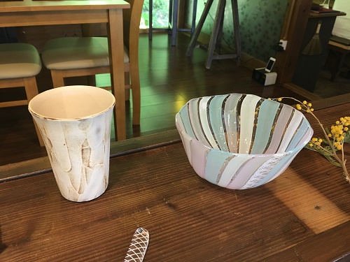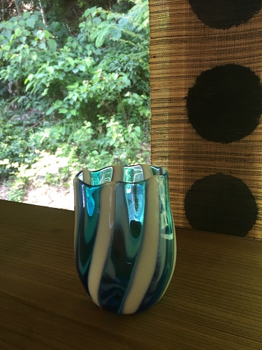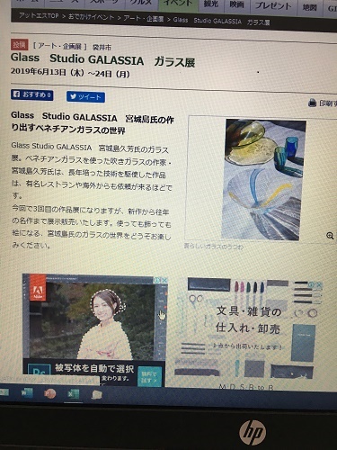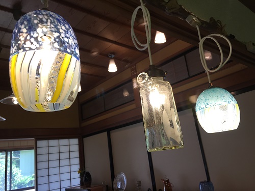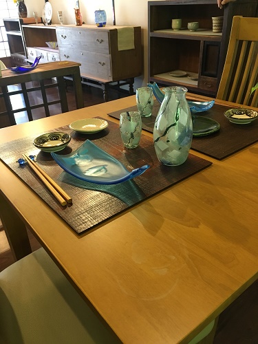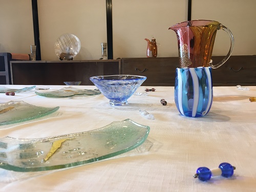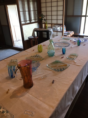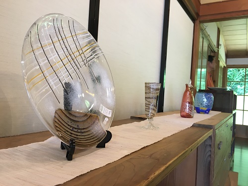 吹きガラスの作家、宮城島久芳氏のガラス展を