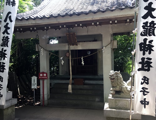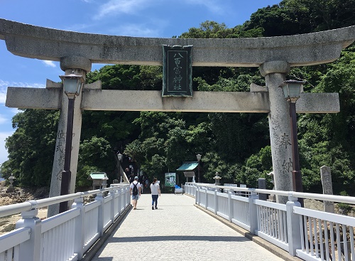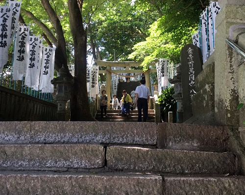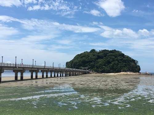 島に到着すると、石段が続く。石段の先に八百富(やおとみ)神社がある。