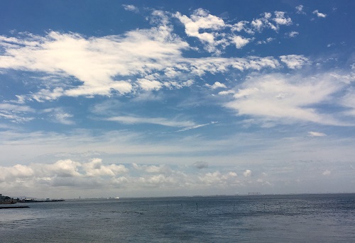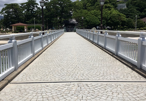 海岸沿いの遊歩道を歩いて橋まで戻り