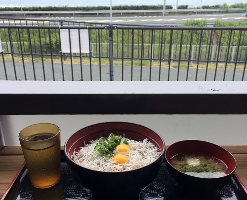 ぼんやりと海を眺めながら、しらす丼を食べる。