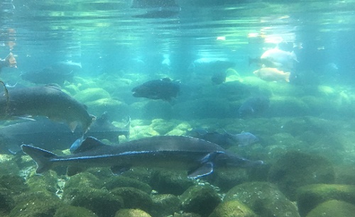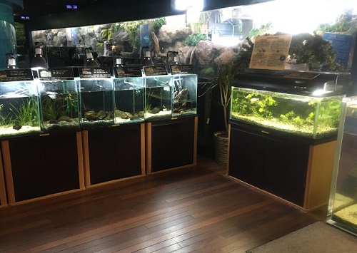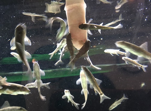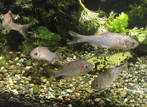 ドジョウやメダカ、ヤリタナゴなどの河川にいる魚たちが展示されている。