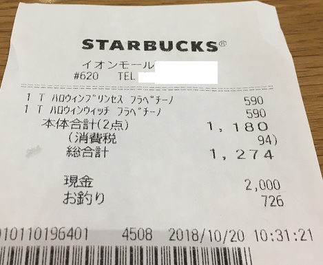 Sちゃんは「ハロウィンプリンセス フラペチーノ」、