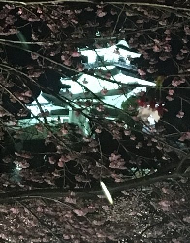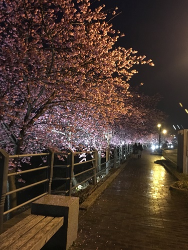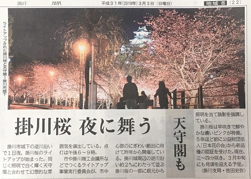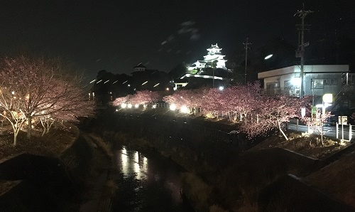 掛川城の前の逆川沿いに掛川桜が咲いていて満開だった。