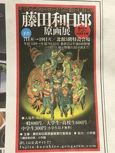 藤田和日郎先生の原画展を開催しているという新聞記事を