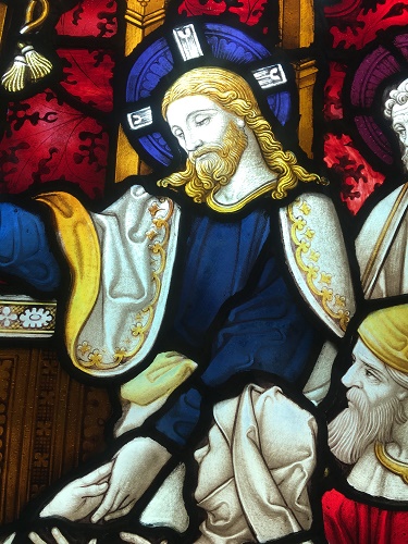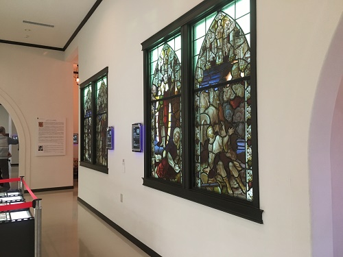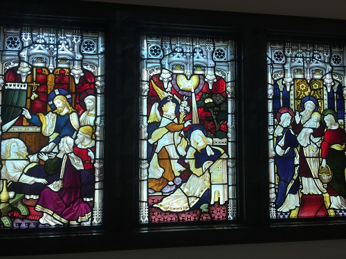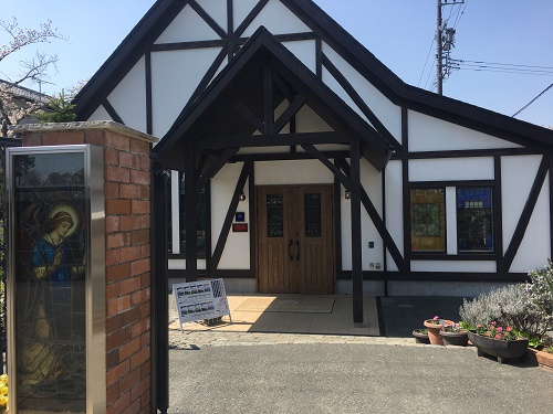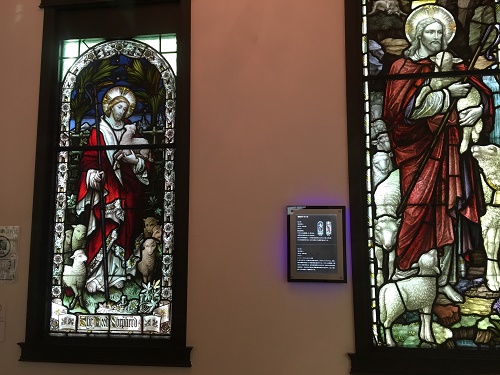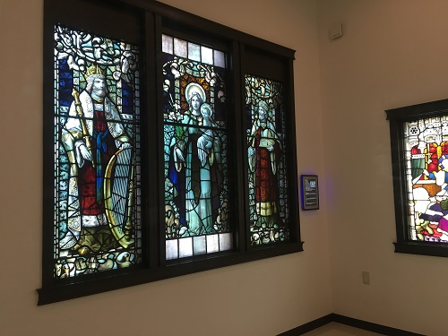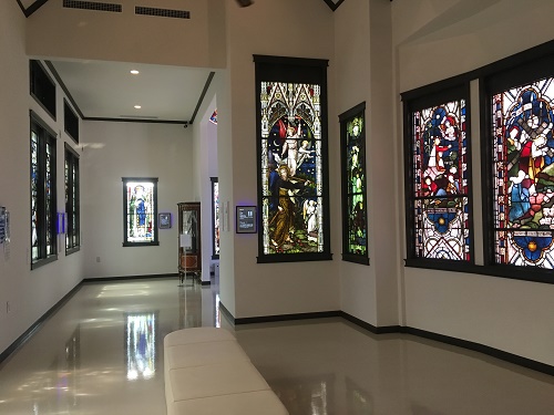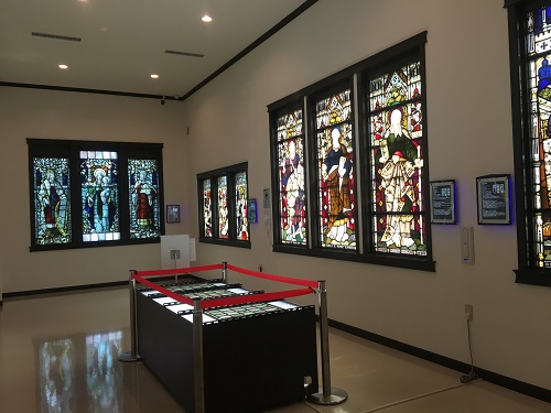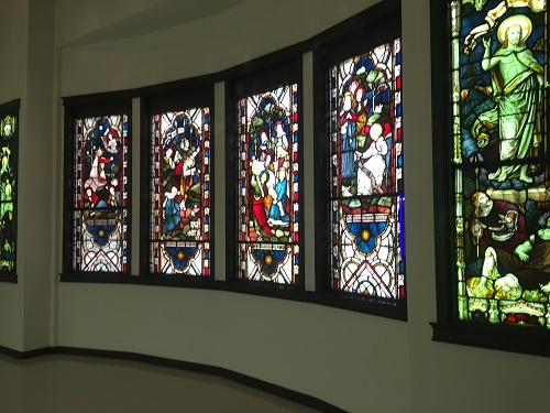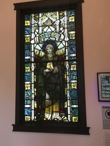 入ってすぐに目の前に聖母マリアのステンドグラスが!!