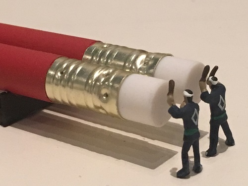 ペンがあちこちに置いてある。