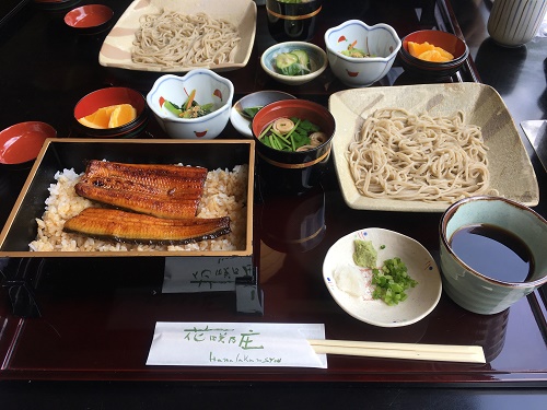 ここではウナギと手打ちそば両方味わえる「花咲御膳」をオーダー。