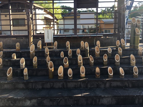 敷地内にもたくさんの竹灯籠、和紙で作った灯籠も置いてある。