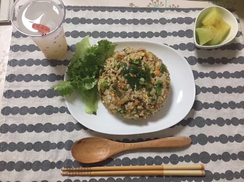 (Sちゃんが自分でレタスチャーハンを作った。後ほどLINEで画像が送られてきた)